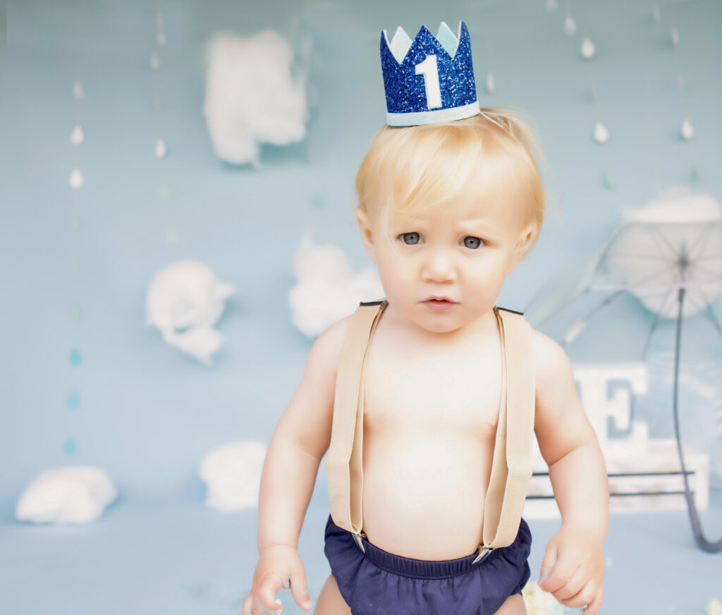 I photographed Fletcher’s big brother’s cake smash, two years ago. His big brother’s cake smash was a St.Patrick’s Day theme, complete with a rainbow and a pot of gold. So once it was Fletcher’s turn we thought, what goes best with rainbows??? Rain!